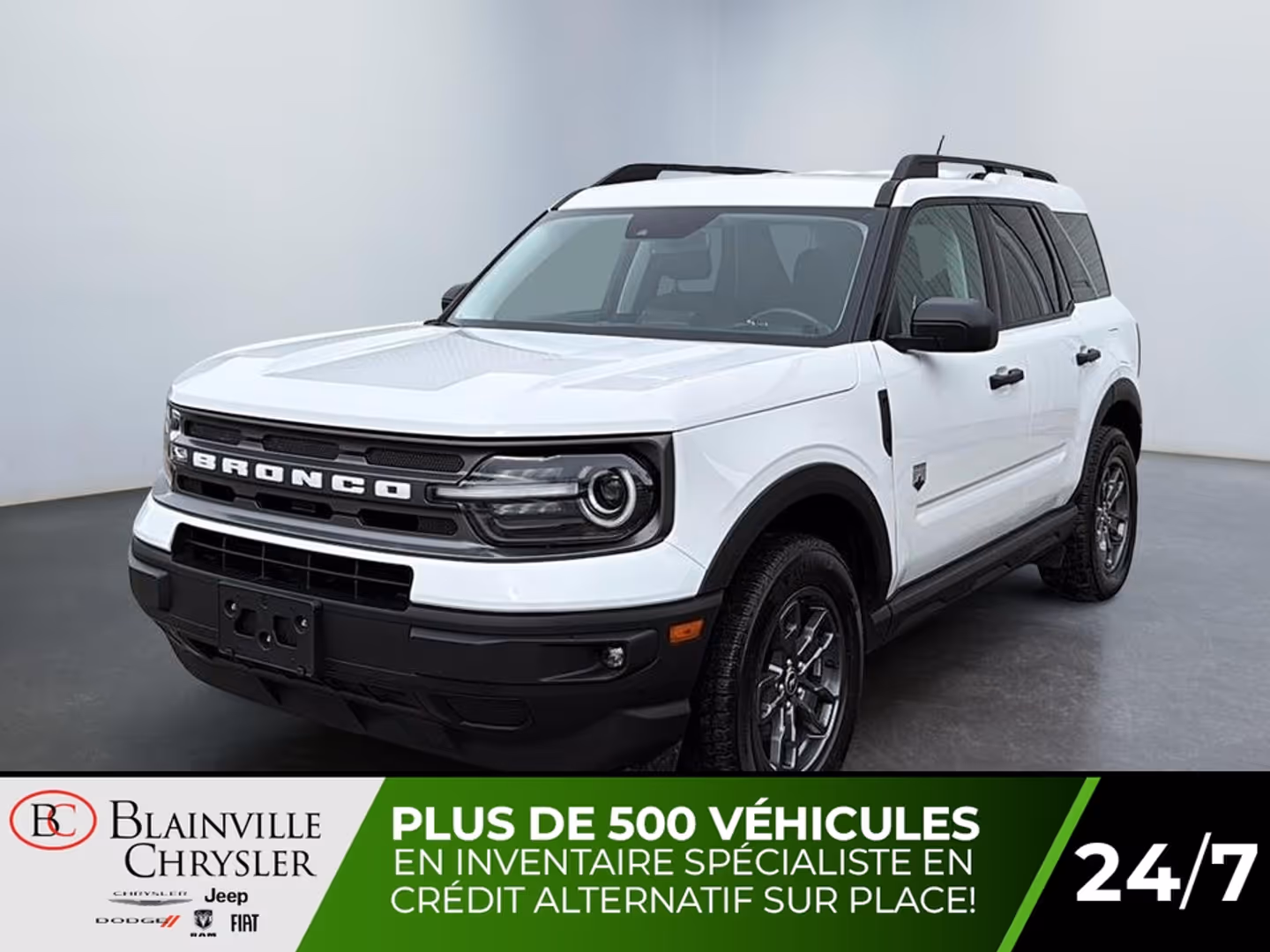 022 FORD BRONCO SPORT BIG BENDCARACTÉRISTIQUES PRINCIPALES• Moteur 3 cylindres turbo 1.5 L EcoBoost• Environ 181 chevaux et 190 lb-pi de couple• Transmission automatique 8 vitesses• Système 4X4 intelligent avec gestion de traction• Modes de conduite G.O.A.T. (Goes Over Any Type of Terrain) pour différents terrains• Capacité de remorquage pouvant atteindre environ 2 000 lb• VUS compact aventurier avec habitacle confortable pour 5 passagersÉQUIPEMENTS DISTINCTIFS• Système multimédia Ford SYNC avec écran tactile• Apple CarPlay et Android Auto• Connectivité Bluetooth mains libres• Caméra de recul avec capteurs de stationnement• Sièges avant chauffants• Volant multifonction gainé de cuir• Climatisation automatique• Démarrage à bouton poussoir avec clé intelligente• Suspension hors route HOSS (High-Performance Off-Road Stability Suspension)• Phares DEL avec signature Ford• Jantes 17 pouces en alliage• Régulateur de vitesse• Système Ford Co-Pilot360 avec aide au maintien de voie et alerte de collisionACHETER EN TOUTE CONFIANCE CHEZ BLAINVILLE CHRYSLER• Inspection complète par nos techniciens certifiés• Financement disponible sur place• Garantie prolongée disponible• Échange accepté• Jusqu’à 90 jours sans paiements (selon admissibilité)Disponible dès aujourd’hui chez Blainville Chrysler.Les tarifs et informations présents sur notre site blainvillechrysler.ca sont à jour et prioritaires.Les prix affichés sur des sites externes peuvent être sujets à un délai de mise à jour et ne constituent pas un engagement contractuel.Nous sommes ouverts les samedisTout type de financement possible aucun cas de refusNous parlons anglais aussi2022 FORD BRONCO SPORT BIG BENDKEY FEATURES• 1.5L turbocharged EcoBoost 3-cylinder engine• Approximately 181 horsepower and 190 lb-ft of torque• 8-speed automatic transmission• Intelligent 4X4 four-wheel drive system• G.O.A.T. (Goes Over Any Type of Terrain) drive modes• Maximum towing capacity of about 2000 lbs• Adventure-ready compact SUV with seating for 5 passengersDISTINCTIVE EQUIPMENT• Ford SYNC infotainment system with touchscreen display• Apple CarPlay and Android Auto• Bluetooth hands-free connectivity• Rear view camera with parking sensors• Heated front seats• Leather multifunction steering wheel• Automatic climate control• Push-button start with smart key• HOSS off-road suspension system• LED headlights with Ford signature lighting• 17-inch alloy wheels• Cruise control• Ford Co-Pilot360 driver-assistance system with lane keeping assist and collision warningBUY WITH CONFIDENCE AT BLAINVILLE CHRYSLER• Full inspection by our certified technicians• Financing available on site• Extended warranty available• Trade-ins accepted• Up to 90 days with no payments (on approved credit)Available today at Blainville Chrysler.The prices and information on our website blainvillechrysler.ca are up to date and take priority.Prices displayed on external websites may be subject to update delays and do not constitute a contractual commitment.We are open on SaturdaysAll types of financing available no cases refusedWe also speak English