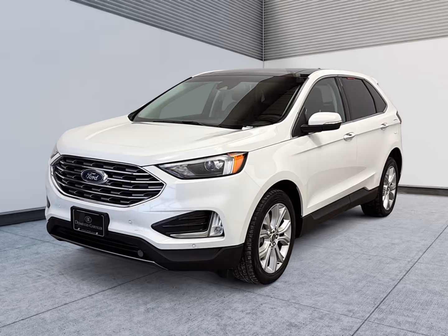 Ford Edge 2023 TitaniumCARACTÉRISTIQUES PRINCIPALES• Moteur EcoBoost 4 cylindres turbo 2.0 L• Environ 250 chevaux et 280 lb-pi de couple• Transmission automatique 8 vitesses• Traction intégrale intelligente AWD• Conduite confortable et silencieuse idéale pour les longs trajets• Habitacle raffiné pouvant accueillir jusqu’à 5 passagersÉQUIPEMENTS DISTINCTIFS• Système multimédia SYNC avec grand écran tactile vertical• Apple CarPlay et Android Auto• Système audio premium Bang & Olufsen• Tableau de bord numérique configurable• Caméra de recul avec capteurs de stationnement• Sièges en cuir chauffants et ventilés• Volant chauffant gainé de cuir• Climatisation automatique bi-zone• Régulateur de vitesse adaptatif• Alerte d’angle mort avec détection de trafic arrière• Aide au maintien de voie• Freinage d’urgence automatique• Toit ouvrant panoramique• Hayon électrique mains libres• Éclairage DEL• Jantes en alliage TitaniumACHETER EN TOUTE CONFIANCE CHEZ DESMEULES CHRYSLER• Inspection complète par nos techniciens certifiés• Financement disponible sur place• Garantie prolongée disponible• Échange accepté• Jusqu’à 90 jours sans paiements (selon admissibilité)Disponible dès aujourd’hui chez Desmeules Chrysler.Les tarifs et informations présents sur notre site desmeuleschrysler.ca sont à jour et prioritaires. Les prix affichés sur des sites externes peuvent être sujets à un délai de mise à jour et ne constituent pas un engagement contractuel.Nous sommes ouverts les samedisTout type de financement possible aucun cas de refusNous parlons anglais aussi