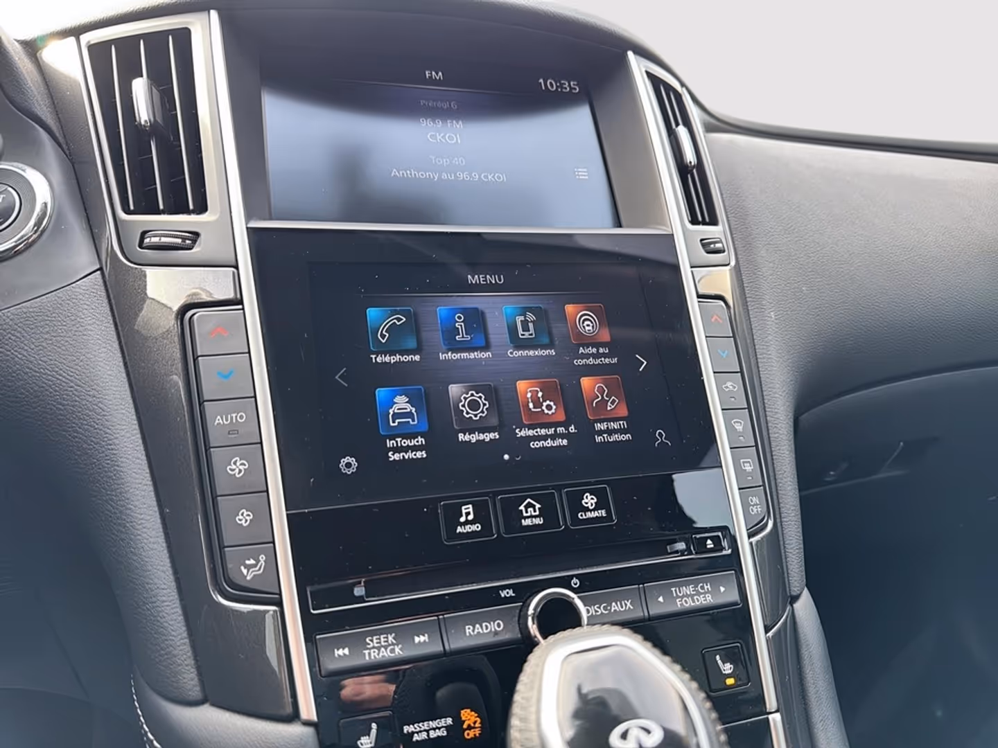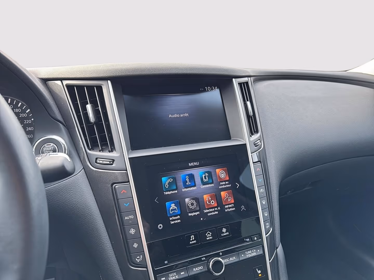 2024 INFINITI Q50 PURECARACTÉRISTIQUES PRINCIPALES• Moteur V6 biturbo 3.0 L à injection directe• Environ 300 chevaux et 295 lb-pi de couple• Transmission automatique 7 vitesses• Traction intégrale intelligente AWD (selon version)• Accélération environ 0-100 km/h en ±50 secondes• Berline sport de luxe avec habitacle confortable pour 5 passagersÉQUIPEMENTS DISTINCTIFS• Système multimédia INFINITI InTouch avec double écran• Apple CarPlay et Android Auto• Système audio de qualité supérieure• Sièges en cuir chauffants à réglages électriques• Volant multifonction gainé de cuir• Climatisation automatique bi-zone• Démarrage à bouton poussoir avec clé intelligente• Phares DEL avec signature INFINITI• Jantes en alliage• Caméra de recul avec capteurs de stationnement• Modes de conduite sélectionnables• Régulateur de vitesse adaptatif• Alerte d’angle mort et aide au maintien de voieACHETER EN TOUTE CONFIANCE CHEZ BLAINVILLE CHRYSLER• Inspection complète par nos techniciens certifiés• Financement disponible sur place• Garantie prolongée disponible• Échange accepté• Jusqu’à 90 jours sans paiements (selon admissibilité)Disponible dès aujourd’hui chez Blainville Chrysler.Les tarifs et informations présents sur notre site blainvillechrysler.ca sont à jour et prioritaires.Les prix affichés sur des sites externes peuvent être sujets à un délai de mise à jour et ne constituent pas un engagement contractuel.Nous sommes ouverts les samedisTout type de financement possible aucun cas de refusNous parlons anglais aussi2024 INFINITI Q50 PUREKEY FEATURES• 3.0L twin-turbocharged V6 engine• Approximately 300 horsepower and 295 lb-ft of torque• 7-speed automatic transmission• Intelligent all-wheel drive system (AWD)• 0-100 km/h acceleration in about 5.0 seconds• Luxury sport sedan with seating for 5 passengersDISTINCTIVE EQUIPMENT• INFINITI InTouch dual-screen infotainment system• Apple CarPlay and Android Auto• Premium sound system• Heated leather power seats• Leather multifunction steering wheel• Dual-zone automatic climate control• Push-button start with smart key• LED headlights with INFINITI signature lighting• Alloy wheels• Rear view camera with parking sensors• Selectable drive modes• Adaptive cruise control• Blind spot monitoring and lane keeping assistBUY WITH CONFIDENCE AT BLAINVILLE CHRYSLER• Full inspection by our certified technicians• Financing available on site• Extended warranty available• Trade-ins accepted• Up to 90 days with no payments (on approved credit)Available today at Blainville Chrysler.The prices and information on our website blainvillechrysler.ca are up to date and take priority.Prices displayed on external websites may be subject to update delays and do not constitute a contractual commitment.We are open on SaturdaysAll types of financing available no cases refusedWe also speak English
