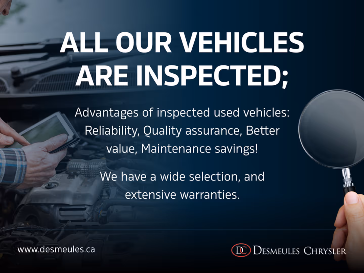 Jeep Compass North 2026 – Élégance sécurité et polyvalence signées JeepDisponible dès maintenant chez Desmeules Chrysler à Laval le Jeep Compass North 2026 allie design raffiné confort moderne et technologies avancées. Avec ses systèmes d’aide à la conduite de pointe et ses capacités 4x4 typiquement Jeep il est prêt à relever tous les défis du quotidien en ville comme sur la route.CARACTÉRISTIQUES PRINCIPALESMoteur 4 cylindres turbo (selon configuration) ;Transmission automatique à 8 vitesses ;Système 4x4 Jeep Active Drive pour une traction optimale ;Système Selec-Terrain MD (Auto Snow Sand Mud) ;Suspension confortable et direction assistée précise.COULEURS ET INTÉRIEURCouleur extérieure : Blanc éclatant ;Couleur intérieure : Noir avec sièges noirs ;Intérieur : Sièges baquets tissu/vinyle de qualité supérieure.ÉQUIPEMENT DE SÉRIESystème Selec-Terrain MD ;Alerte de collision avant pleine vitesse Plus ;Freinage d’urgence avec détection de piétons et cyclistes ;Système de gestion active de trajectoire ;Surveillance des angles morts et détection d’obstacles transversaux arrière ;Détection de somnolence au volant ;Alerte de rappel pour banquette arrière ;Système électronique d’antidérapage (ESC) ;Assèchement automatique des freins ;Assistance au départ en pente ;Antipatinage toutes vitesses ;Dispositif antiroulis électronique ;Dispositif antilouvoiement de remorque ;Frein de stationnement électrique ;Phares automatiques ;Téléverrouillage de proximité ;Démarrage par bouton-poussoir et à distance ;Climatisation automatique ;Sièges avant chauffants ;Volant chauffant ;Écran tactile Uconnect 5 de 84 po ;Compatibilité Apple CarPlay et Android Auto.ACCESSOIRES ET OPTIONSEnsemble Éclairage 29J – 100 $ ;Édition spéciale Altitude – 2 845 $(Design exclusif noir jantes distinctives et finitions intérieures raffinées.) ;Ensemble Toit ouvrant et Audio – 1 995 $(Inclut toit ouvrant panoramique et système audio amélioré.) ;Ensemble Commodités – 1 995 $(Inclut radio HD intégration Alexa écran tactile dissocié SiriusXM 360L à contenu sur demande capteur d’humidité et services connectés de circulation et de voyage.)SÉCURITÉ ET AIDES À LA CONDUITERégulateur de vitesse adaptatif avec fonction arrêt/reprise ;Alerte de collision avant avec freinage automatique ;Détection de somnolence au volant ;Assistance au départ en pente ;Surveillance des angles morts ;Caméra de recul ParkView MD ;Aide au stationnement arrière Park-Sense MD ;Dispositif antiroulis et antipatinage toutes vitesses.CONFORT ET TECHNOLOGIEUconnect 5 avec écran tactile de 84 po ;Apple CarPlay et Android Auto sans fil ;Sièges avant et volant chauffants ;Climatisation automatique ;Toit ouvrant panoramique (optionnel) ;Radio HD et intégration Alexa ;Système audio amélioré avec SiriusXM 360L.ACHETEZ EN TOUTE CONFIANCE CHEZ DESMEULES CHRYSLERInspection complète par nos techniciens certifiés ;Financement sur place à taux compétitifs ;Garantie prolongée disponible ;Échange accepté ;Jusqu’à 90 jours sans paiements (selon admissibilité).Le Jeep Compass North 2026 offre le juste équilibre entre technologie élégance et performance Jeep idéal pour ceux qui recherchent un VUS compact à la fois pratique et sophistiqué.PHOTOS ET DESCRIPTIONS SONT À TITRE INFORMATIF SEULEMENT. L’ÉQUIPEMENT PEUT DIFFÉRER. EN CAS DE DIFFÉRENCE ENTRE LA DESCRIPTION / PHOTO ET LE VÉHICULE RÉEL CE DERNIER A PRIORITÉ.PRIX SUJET À CHANGEMENT SANS PRÉAVIS.
