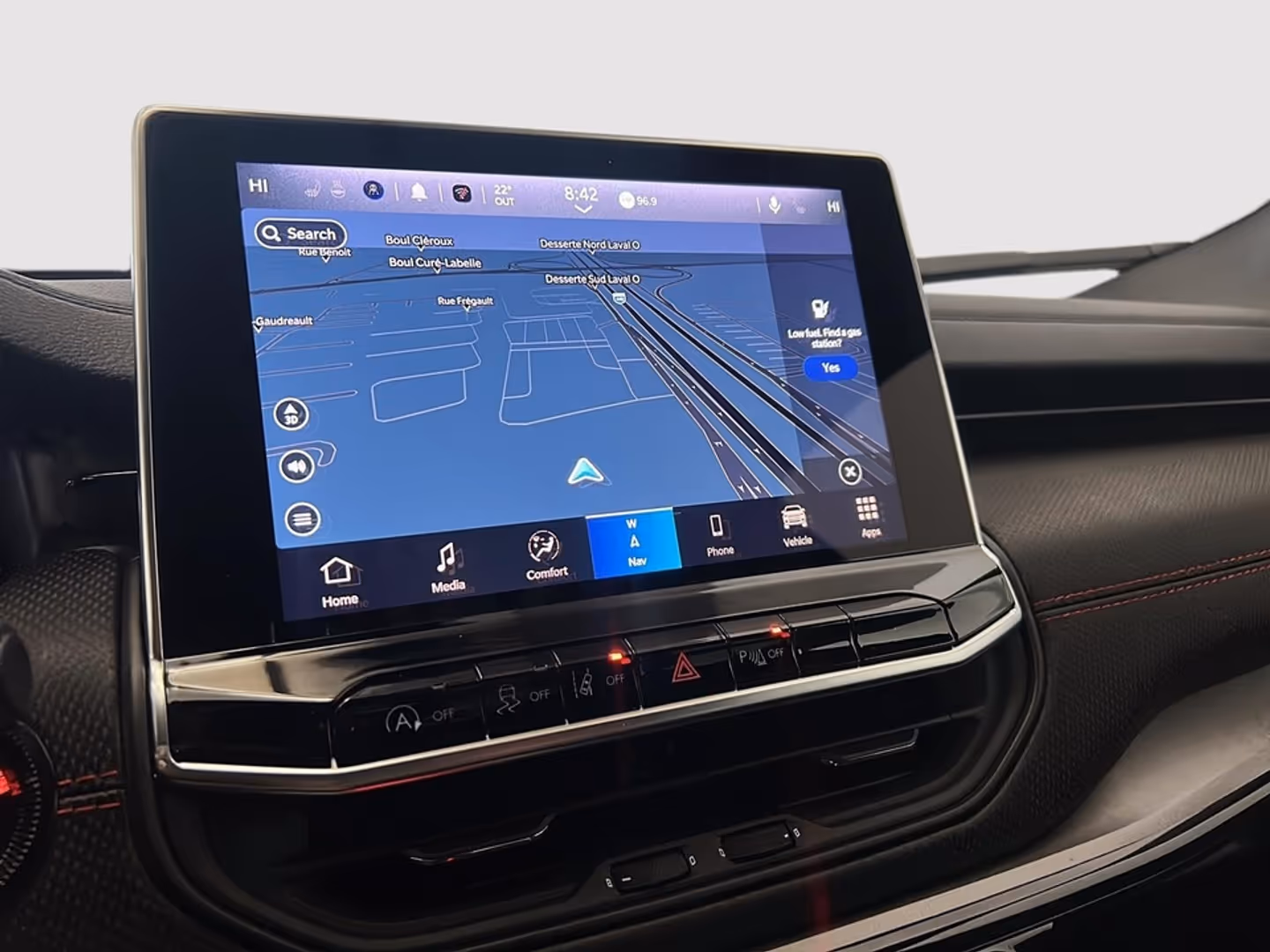 Jeep Compass Trailhawk 4x4Aventure. Capacité Trail Rated. Technologie Jeep.Disponible dès maintenant chez Desmeules Chrysler à Laval ce Jeep Compass Trailhawk 4x4 2026 en Couche Nacrée Bleu des Profondeurs avec intérieur noir et coutures contrastantes rouge rubis propose un mélange parfait entre style capacités hors route et technologies modernes. Son moteur turbo 20 L 4 cylindres jumelé à une transmission automatique 8 vitesses offre puissance efficacité et confiance sur tous les types de terrains.MOTORISATION ET TRANSMISSION• Moteur turbo 20 L 4 cylindres en ligne;• Transmission automatique 8 vitesses;• Système 4x4 Jeep Active Drive Low;• Gestion de traction Selec-Terrain;• Suspension calibrée hors route;• Limiteur de vitesse en descente;• Antipatinage toutes vitesses;• Assistance au départ en pente;• Dispositif électronique anti-roulis;• Dispositif antilouvoiement de remorque.CAPACITÉS HORS ROUTE• Version Trailhawk Trail Rated;• Plaque de protection de transmission;• Plaque de protection sous le réservoir de carburant;• Plaque de protection de la boîte de transfert;• Plaque de protection de suspension avant;• Suspension hors route renforcée.SÉCURITÉ ET ASSISTANCE À LA CONDUITE• Alerte de collision avant avec freinage actif;• Freinage d’urgence avec détection des piétons et cyclistes;• Régulateur de vitesse adaptatif avec fonction arrêt/redémarrage;• Système de gestion active de voie;• Surveillance des angles morts avec détection d’obstacles transversaux arrière;• Détection de somnolence du conducteur;• Aide au stationnement arrière ParkSense;• Caméra de recul ParkView;• Alerte de rappel pour la banquette arrière;• Système électronique d’antidérapage;• Assèchement automatique des freins.CONFORT ET TECHNOLOGIE• Système Uconnect 5 avec écran tactile de 101 pouces;• Écran couleur de 1025 pouces au groupe d’instruments;• Navigation GPS intégrée;• Apple CarPlay et Google Android Auto;• Système audio Alpine haut de gamme;• Radio HD;• SiriusXM avec contenu sur demande 360L;• Alexa intégré;• Services connectés pour déplacements et circulation;• Téléphonie mains libres;• Climatisation automatique bizone;• Sièges avant chauffants;• Volant chauffant;• Démarreur à distance;• Entrée sans clé avec détection de proximité;• Démarrage par bouton-poussoir.DESIGN ET ÉQUIPEMENTS EXTÉRIEURS• Couleur extérieure Bleu des Profondeurs nacré;• Toit ouvrant panoramique à deux panneaux;• Hayon mains libres Open’n Go activé par le pied;• Phares DEL avec commande automatique;• Feux de route automatiques;• Dégivreur d’essuie-glace avant.ENSEMBLES ET OPTIONS INCLUS• Ensemble éclair 29E Trailhawk;• Ensemble toit ouvrant audio et navigation;• Attelage de remorque classe III;• Faisceau de câblage à 4 broches.LE COMPASS LE PLUS AVENTURIERLe Jeep Compass Trailhawk 2026 est conçu pour ceux qui recherchent un VUS compact capable de sortir des sentiers battus. Grâce à ses plaques de protection son système 4x4 avancé et ses technologies de sécurité modernes il offre l’équilibre parfait entre aventure et confort quotidien.Acheter en toute confiance chez Desmeules Chrysler• Inspection certifiée;• Tout type de financement possible — aucun cas de refus;• Garantie prolongée disponible;• Échange accepté;• Jusqu’à 90 jours sans paiements disponibles selon approbation.Disponible dès maintenant chez Desmeules Chrysler à Laval.Les tarifs et informations présents sur notre site www.desmeuleschrysler.ca sont à jour et prioritaires. Les prix affichés sur des sites externes peuvent être sujets à un délai de mise à jour et ne constituent pas un engagement contractuel.Nous sommes ouverts les samedis. Nous parlons anglais aussi.Adventure. Trail Rated Capability. Jeep Technology.Available now at Desmeules Chrysler in Laval this 2026 Jeep Compass Trailhawk 4x4 finished in Deep Sea Blue Pearl with black interior and ruby red contrast stitching blends rugged off-road capability with modern technology. Powered by a 2.0L turbocharged inline-four engine paired with an 8-speed automatic transmission it delivers strong performance and confidence on any terrain.ENGINE & TRANSMISSION• 2.0L turbocharged inline-four engine;• 8-speed automatic transmission;• Jeep Active Drive Low 4x4 system;• Selec-Terrain traction management system;• Off-road tuned suspension;• Hill descent control;• All-speed traction control;• Hill Start Assist;• Electronic Roll Mitigation;• Trailer Sway Control.OFF-ROAD CAPABILITY• Trailhawk Trail Rated capability;• Transmission skid plate;• Fuel tank skid plate;• Transfer case skid plate;• Front suspension skid plate;• Off-road suspension calibration.SAFETY & DRIVER ASSISTANCE• Forward Collision Warning with Active Braking;• Pedestrian and cyclist emergency braking;• Adaptive cruise control with stop and go;• Active lane management system;• Blind-spot monitoring with rear cross-path detection;• Driver drowsiness detection;• ParkSense rear park assist;• ParkView rear backup camera;• Rear seat reminder alert;• Electronic Stability Control;• Automatic brake