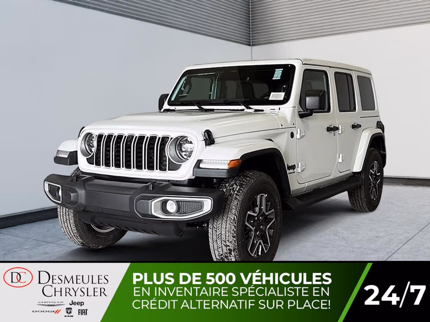 Jeep Wrangler Sahara 4 portes 4x4L’icône Jeep. Confort Sahara. Capacité hors route légendaire.Disponible dès maintenant chez Desmeules Chrysler à Laval ce Jeep Wrangler Sahara 4 portes 4x4 2026 en Blanc Éclatant avec intérieur noir et sièges garnis McKinley combine le style emblématique du Wrangler un confort raffiné et les capacités hors route reconnues de Jeep. Doté d’une transmission automatique à 8 vitesses ce VUS offre une conduite fluide et une polyvalence exceptionnelle pour la route comme pour l’aventure.PERFORMANCE ET CAPACITÉS• Système de traction intégrale Jeep 4x4;• Commande Selec-Speed pour conduite hors route;• Assistance au départ en pente;• Essieu arrière robuste Dana M220;• Radiateur d’huile moteur;• Plaques de protection pour la transmission la boîte de transfert et le réservoir;• Système électronique d’antidérapage;• Antipatinage et gestion avancée de la stabilité.SÉCURITÉ ET AIDES À LA CONDUITE• Régulateur de vitesse adaptatif avec fonction arrêt;• Alerte de collision avant pleine vitesse Plus;• Assistance au freinage évoluée;• Surveillance des angles morts avec détection d’obstacles transversaux arrière;• Aide au stationnement arrière Park-Sense;• Caméra de recul ParkView;• Sacs gonflables avant multimodes évolués;• Sacs gonflables latéraux montés aux sièges avant;• Rideaux gonflables latéraux supplémentaires;• Alarme de sécurité.TECHNOLOGIE ET CONNECTIVITÉ• Système Uconnect 5 avec écran tactile de 123 pouces;• Compatibilité Apple CarPlay et Android Auto;• SiriusXM 360L avec contenu sur demande;• Groupe d’instruments avec écran couleur 7 pouces;• Radio HD et services de voyage connectés;• Téléphonie mains libres;• Commandes audio montées sur le volant;• Pages de renseignements hors route Jeep.CONFORT ET INTÉRIEUR• Intérieur noir avec sièges garnis McKinley;• Sièges avant chauffants;• Volant chauffant;• Climatisation automatique;• Système de démarrage à distance;• Démarrage par bouton-poussoir;• Filtration de l’air de l’habitacle;• Banquette arrière rabattable 60/40;• Ouvre-porte de garage universel.DESIGN ET ÉQUIPEMENTS EXTÉRIEURS• Couleur extérieure Blanc Éclatant;• Toit rigide 3 sections couleur carrosserie;• Marchepieds latéraux;• Design robuste et emblématique Wrangler;• Phares automatiques;• Plaques de protection hors route.ENSEMBLES ET OPTIONS INCLUS• Ensemble Équipement Populaire Sahara;• Sièges garnis McKinley premium;• Navigation GPS intégrée;• Sièges conducteur et passager à 8 réglages électriques;• Soutien lombaire électrique conducteur et passager;• Rétroviseur intérieur autoatténuant;• Commande automatique des phares;• Ensemble Dual Top avec toit rigide;• Ensemble Attelage de remorque et commandes auxiliaires;• Faisceau de câblage pour remorque 4 et 7 broches;• Tapis protecteurs toutes saisons Mopar.LE WRANGLER SAHARA : L’AVENTURE AVEC CONFORTLe Jeep Wrangler Sahara 2026 offre le parfait équilibre entre capacité hors route confort et technologies modernes. Un VUS emblématique conçu pour ceux qui veulent profiter pleinement de la route… et sortir des sentiers battus.Acheter en toute confiance chez Desmeules Chrysler• Inspection complète par nos techniciens certifiés;• Financement flexible disponible;• Garantie prolongée disponible;• Échange accepté;• Jusqu’à 90 jours sans paiements disponibles selon approbation.Disponible dès maintenant chez Desmeules Chrysler à Laval.Les tarifs et informations présents sur notre site www.desmeuleschrysler.ca sont à jour et prioritaires. Les prix affichés sur des sites externes peuvent être sujets à un délai de mise à jour et ne constituent pas un engagement contractuel.Nous sommes ouverts les samedis. Nous parlons anglais aussi.The Jeep icon. Sahara comfort. Legendary off-road capability.Available now at Desmeules Chrysler in Laval this 2026 Jeep Wrangler Sahara 4-Door 4x4 finished in Bright White with black interior and McKinley-trimmed seats combines the iconic Wrangler design refined comfort and legendary Jeep off-road capability. Equipped with an 8-speed automatic transmission it delivers smooth performance and exceptional versatility for both daily driving and adventure.PERFORMANCE AND CAPABILITY• Legendary Jeep 4x4 system;• Selec-Speed off-road control system;• Hill start assist;• Heavy-duty Dana M220 rear axle;• Engine oil cooler;• Skid plates for transmission transfer case and fuel tank;• Electronic stability control;• Advanced traction management systems.SAFETY AND DRIVER ASSISTANCE• Adaptive cruise control with stop;• Full-speed forward collision warning plus;• Advanced brake assist;• Blind-spot monitoring with rear cross-path detection;• Park-Sense rear park assist;• ParkView rear backup camera;• Advanced multistage front airbags;• Front seat-mounted side airbags;• Supplemental side curtain airbags;• Security alarm system.TECHNOLOGY AND CONNECTIVITY• Uconnect 5 system with 12.3-inch touchscreen;• Apple CarPlay and Android Auto compatibility;• SiriusXM 360L satellite radio;• 7-inch digital instrument display;• HD Radio and connect