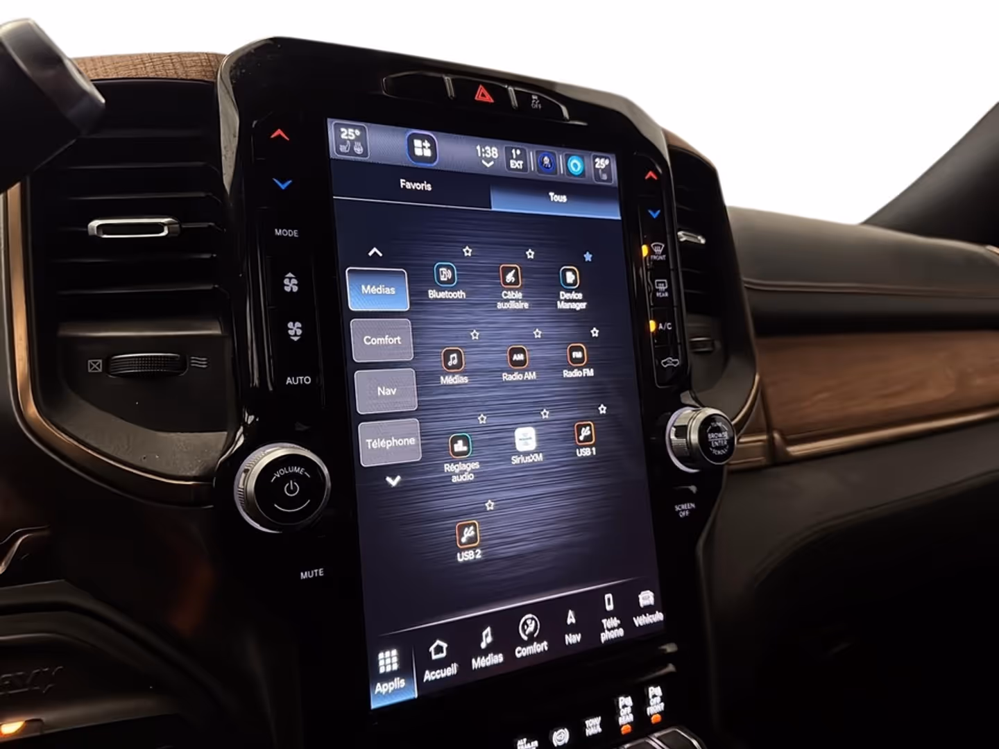 RAM 3500 LONGHORN 2023 – Puissance prestige et raffinement absoluDisponible dès maintenant chez Desmeules Chrysler à Laval le RAM 3500 Longhorn 2023 incarne le summum du luxe et de la puissance dans le segment des camions lourds. Équipé du moteur Cummins?? 67 L turbo diesel à 6 cylindres en ligne et de la transmission automatique AISIN?? à 6 vitesses ultrarobuste il offre une capacité de remorquage exceptionnelle une durabilité inégalée et un confort haut de gamme digne d’un véhicule de prestige.CARACTÉRISTIQUES PRINCIPALESMoteur : 6 cylindres en ligne Cummins?? 67 L turbo diesel haute résistanceTransmission : Automatique AISIN?? à 6 vitesses ultrarobusteCouleur extérieure : Couche nacrée Cristal Noir Étincelant (495 $)Couleur intérieure : Noir / Beige BisonIntérieur : Sièges baquets avant ventilés en cuir véritableRapport de pont arrière : 410ÉQUIPEMENT DE SÉRIEBoîte de transfert électrique à passage à la voléeEssieu arrière à différentiel autobloquantTéléverrouillage de proximité et démarrage par bouton-poussoirAlarme de sécurité et démarreur à distanceCaméra de recul ParkView?? et système Park-Sense avant/arrièreHayon amorti avec ouverture facilitéeÉcran couleur TFT de 12 pouces avec pages de remorquage et hors routePédalier réglable électriquement avec mémoireRétroviseurs extérieurs télescopiques rabattables électriquement autoatténuants et à réglage automatiqueFeux utilitaires avant et arrièreEssuie-glaces détecteurs de pluieFreins antiblocage à disque aux 4 roues avec assistance au freinageFreinage d’urgence anticipé et assistance au départ en penteSacs gonflables avant multimodes évoluésSacs gonflables latéraux supplémentaires (avant et rideaux)Sièges avant chauffants et ventilésVolant chauffant et sièges chauffants à la 2e rangéeClimatiseur automatique bizoneUconnect?? 5 NAV avec écran tactile de 84 poWi-Fi 4G LTE et SiriusXM?? avec abonnement 360LCompatibilité Apple CarPlay et Android Auto??Système audio Alpine?? à 9 haut-parleurs avec caisson d’extrêmes gravesPhares projecteurs bifonctionnels à DEL et antibrouillards à DELAttelage de classe V avec faisceaux à 4 et 7 brochesACCESSOIRES ET OPTIONSEnsemble d’équipement de niveau 1 Longhorn – 3 495 $Éclairage à DEL dans la caisseSystème audio haut de gamme Harman/Kardon?? à 17 haut-parleursTapis de recharge sans fil RAMcharger??Uconnect?? 5 NAV avec grand écran de 12 poucesSurveillance des angles morts et détection d’obstacles transversaux arrièreDoublure de caisse pulvérisée MOPAR??Autres options et équipementsTransmission AISIN?? ultrarobuste à 6 vitesses : 4 155 $Moteur Cummins?? 67 L Turbo Diesel : 7 795 $Suspension pneumatique arrière à correction d’assiette : 1 595 $Réservoir de carburant de 189 L : 740 $Roues arrière jumelées : 1 495 $Essieu avant renforcé (6 000 lb) avec rallonges de moyeuPréparation remorque sellette/col-de-cygne : 500 $Feux de gabarit avant/arrièreRoues de 17 x 6 po en aluminium poliPneus tout-terrain LT235/80R17E à flanc noirTECHNOLOGIES ET CONFORTUconnect?? 5 NAV à écran de 12 po interface rapide et intuitiveSièges avant ventilés et chauffants avec réglages électriques (8 positions)Volant chauffant gainé de cuirSièges arrière chauffantsTapis de recharge sans fil et ports USB multiplesSystème audio Harman/Kardon?? de catégorie supérieureClimatisation automatique bizoneÉclairage d’ambiance intérieur haut de gammeMatériaux nobles et finitions Longhorn distinctivesSÉCURITÉ ET ASSISTANCES À LA CONDUITESystème de surveillance des angles morts avec détection d’obstacles transversauxFreinage d’urgence anticipé et assistance au départ en penteContrôle électronique de stabilité et antipatinageCaméras de recul et d’assistance au stationnement Park-Sense??Sacs gonflables évolués et système d’alarme de sécuritéFeux à DEL puissants pour une visibilité supérieureEN RÉSUMÉLe RAM 3500 Longhorn 2023 redéfinit les standards du camion de luxe. Son moteur Cummins?? turbo diesel combiné à la transmission AISIN?? ultrarobuste offre des performances inégalées tandis que son habitacle raffiné garantit un confort absolu. Puissance prestige et technologie s’unissent pour créer une expérience de conduite hors du commun.Ce RAM 3500 Longhorn est prêt à relever tous les défis. Venez l’essayer dès aujourd’hui chez Desmeules Chrysler à Laval !PHOTOS ET DESCRIPTIONS SONT À TITRE INFORMATIF SEULEMENT. L’ÉQUIPEMENT PEUT DIFFÉRER. SI DIFFÉRENCE ENTRE LA DESCRIPTION ET/OU PHOTO PAR RAPPORT AU VÉHICULE RÉEL CELUI-CI A PRIORITÉ.PRIX SUJET À CHANGEMENT SANS PRÉAVIS.PHOTOS AND DESCRIPTIONS ARE FOR INFORMATION PURPOSES ONLY. EQUIPMENT MAY DIFFER. IF THE DESCRIPTION AND/OR PHOTO DIFFERS FROM THE ACTUAL VEHICLE THE VEHICLE HAS PRIORITY.PRICES ARE SUBJECT TO CHANGE WITHOUT NOTICE.Les tarifs et informations présents sur notre site: www.desmeuleschrysler.ca sont à jour et prioritaires. Les prix affichés sur des sites externes peuvent être sujets à un délai de mise à jour et ne constituent pas un engagement contractuel.