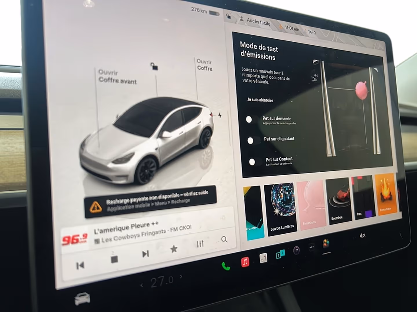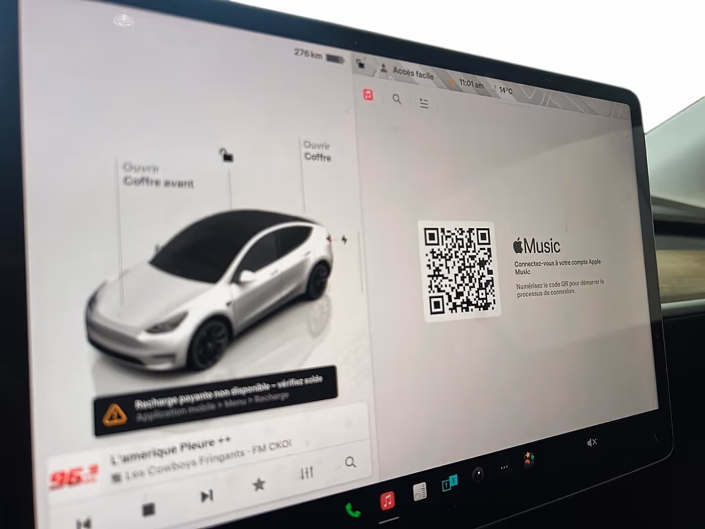 TESLA MODEL Y 2023AVEC FULL AUTO DRIVEDisponible dès maintenant chez Desmeules Chrysler à LavalDécouvrez un VUS entièrement électrique ultra moderne qui combine performance hors pair technologie de pointe et conduite partiellement autonome. Le Tesla Model Y 2023 avec Full Auto Drive offre une expérience de mobilité futuriste silencieuse et ultra connectée. Conçu pour ceux qui exigent le meilleur de l’électrique de l’autonomie et du confort ce véhicule se distingue autant par son efficacité que par son innovation.PERFORMANCE ÉLECTRIQUE & CONDUITELe Tesla Model Y 2023 offre une propulsion 100 % électrique avec une accélération rapide une maniabilité précise et une traction exceptionnelle idéale pour la vie urbaine comme pour les longs trajets.Propulsion entièrement électrique pour une conduite silencieuse;Accélération instantanée et réactive;Transmission à un seul rapport pour une performance optimale;Excellente tenue de route et stabilité;Conduite fluide et engageante en toutes conditions.FULL AUTO DRIVE – TECHNOLOGIE AVANCÉEL’intégration de Full Auto Drive procure une assistance à la conduite avancée rendant chaque trajet plus sécuritaire et plus détendu.Assistance à la conduite semi-autonome;Adaptation intelligente à la circulation;Maintien automatique de la dynamique de vitesse;Fonctionnalités d’aide à la navigation sur autoroute;Confiance accrue pour les longs trajets.CONFORT & HABITACLEL’intérieur du Model Y 2023 offre une atmosphère lumineuse moderne et confortable parfaitement adaptée aux déplacements quotidiens et aux escapades prolongées.Habitacle spacieux et bien aménagé;Sièges confortables avec soutien ergonomique;Grand toit panoramique en verre;Climatisation automatique haut de gamme;Matériaux et finitions modernes.TECHNOLOGIES & CONNECTIVITÉTesla est reconnu pour son interface technologique intuitive et ses améliorations continues.Écran central tactile contrôlant la majorité des fonctions;Mise à jour logicielle à distance;Navigation intégrée avec informations en temps réel;Bluetooth et connectivité smartphone;Commandes vocales pour une utilisation simplifiée.SÉCURITÉ & ASSISTANCE À LA CONDUITELa sécurité est une priorité essentielle dans la conception du Model Y 2023.Caméras et capteurs multiples pour une vision à 360°;Systèmes avancés d’aide à la conduite;Contrôle de stabilité et de traction;Structure robuste conçue pour protéger les occupants;Aides au stationnement facilité.POLYVALENCE & PRATICITÉLe Tesla Model Y 2023 est conçu pour accompagner tous les aspects de votre vie.Coffre spacieux avec hayon pratique;Banquette arrière rabattable pour un espace de chargement accru;Confort optimal pour les longs trajets;Idéal pour famille travail ou loisirs;Véhicule électrique moderne et polyvalent.UN VUS ÉLECTRIQUE CONNECTÉ ET INTELLIGENTLe Tesla Model Y 2023 avec Full Auto Drive est le choix parfait pour ceux qui souhaitent un VUS électrique technologique performant et assisté offrant une expérience de conduite moderne sécuritaire et adaptée à l’avenir.Disponible dès maintenant chez Desmeules Chrysler à Laval.TESLA MODEL Y 2023WITH FULL AUTO DRIVEAvailable now at Desmeules Chrysler in LavalDiscover an ultra-modern all-electric SUV that combines outstanding performance cutting-edge technology and advanced driving assistance. The 2023 Tesla Model Y with Full Auto Drive delivers a futuristic quiet and highly connected mobility experience. Engineered for drivers who demand top-tier electric driving autonomy features and luxury comfort this vehicle stands out for its efficiency and innovation.ELECTRIC PERFORMANCE & DRIVINGThe 2023 Tesla Model Y provides 100 % electric propulsion with rapid acceleration precise handling and exceptional traction — perfect for daily commutes as well as long-distance travel.Fully electric propulsion for a smooth and quiet ride;Instant and responsive acceleration;Single-speed transmission for optimal performance;Excellent road holding and stability;Smooth and engaging drive in all conditions.FULL AUTO DRIVE – ADVANCED TECHNOLOGYWith Full Auto Drive the Model Y offers advanced driver assistance features creating a safer and more relaxed driving experience.Semi-autonomous driving assistance;Intelligent traffic adaptation;Automatic speed regulation;Highway navigation support features;Enhanced confidence on long trips.COMFORT & INTERIORThe interior of the 2023 Model Y is bright modern and comfortable ideal for both everyday use and extended road trips.Spacious and well-designed cabin;Comfortable seats with ergonomic support;Large panoramic glass roof;Premium automatic climate control;Modern materials and finishes.TECHNOLOGY & CONNECTIVITYTesla is known for its intuitive tech interface and continuous software improvements.Central touchscreen controlling most vehicle functions;Over-the-air software updates;Real-time navigation;Bluetooth and smartphone connectivity;Voice commands for simplified use.SAFETY & DRIVER ASSISTANCESafety is a key priority in the design of the 2023 Model Y.Mu